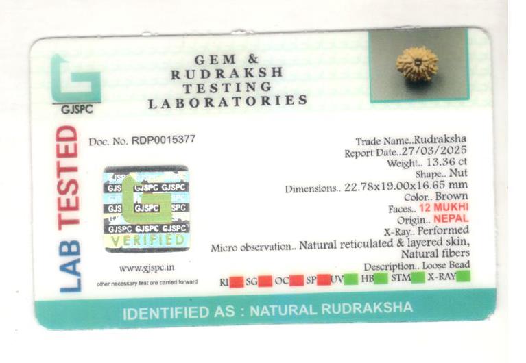 12 Mukhi Rudraksha-Nepal<div class="custom-sku-added">SKU: SRW-012-045</div>Certification No: RDP0015377