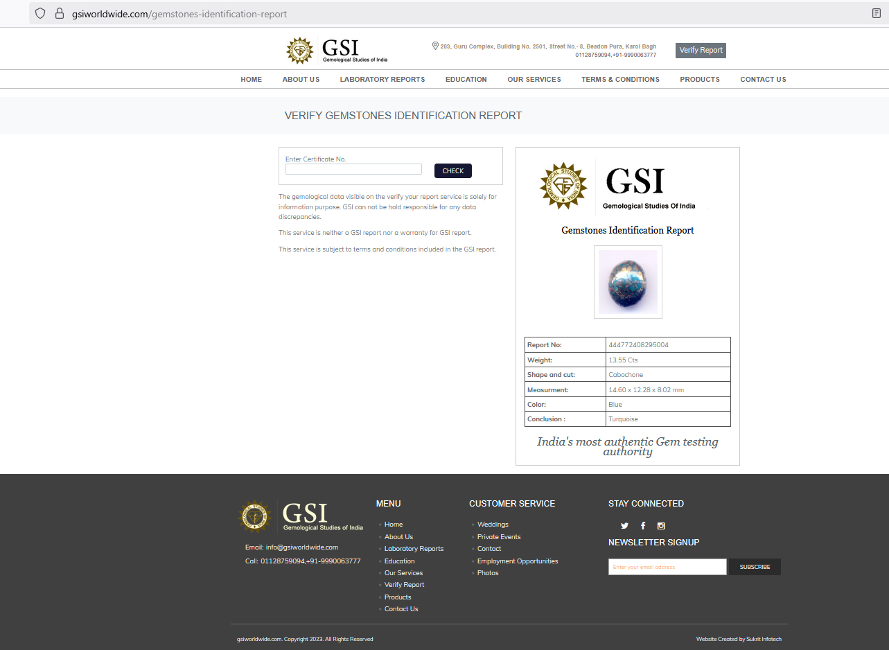 Turquoise – 13.55 CaratsCertification No: 444772408295004